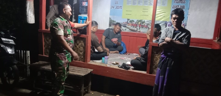 Patroli Malam dilakukan Anggota Babinsa mampir di Poskamling RT 002/003 Desa Pasanggrahan untuk mengetahui sejauh mana kesadaran warga dalam melaksanakan ronda malam tersebut.