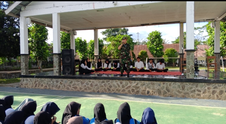 Babinsa Koramil 1902 Plered, Kodim 0619 Purwakarta, Serma Nanang Karyana bersama Serda Yodi F, melaksanakan kegiatan sosialisasi rekrutmen TNI Angkatan Darat (AD) Bintara dan Tamtama Tahun 2026 di SMAN 1 Tegalwaru, Kecamatan Tegalwaru, Kabupaten Purwakarta.